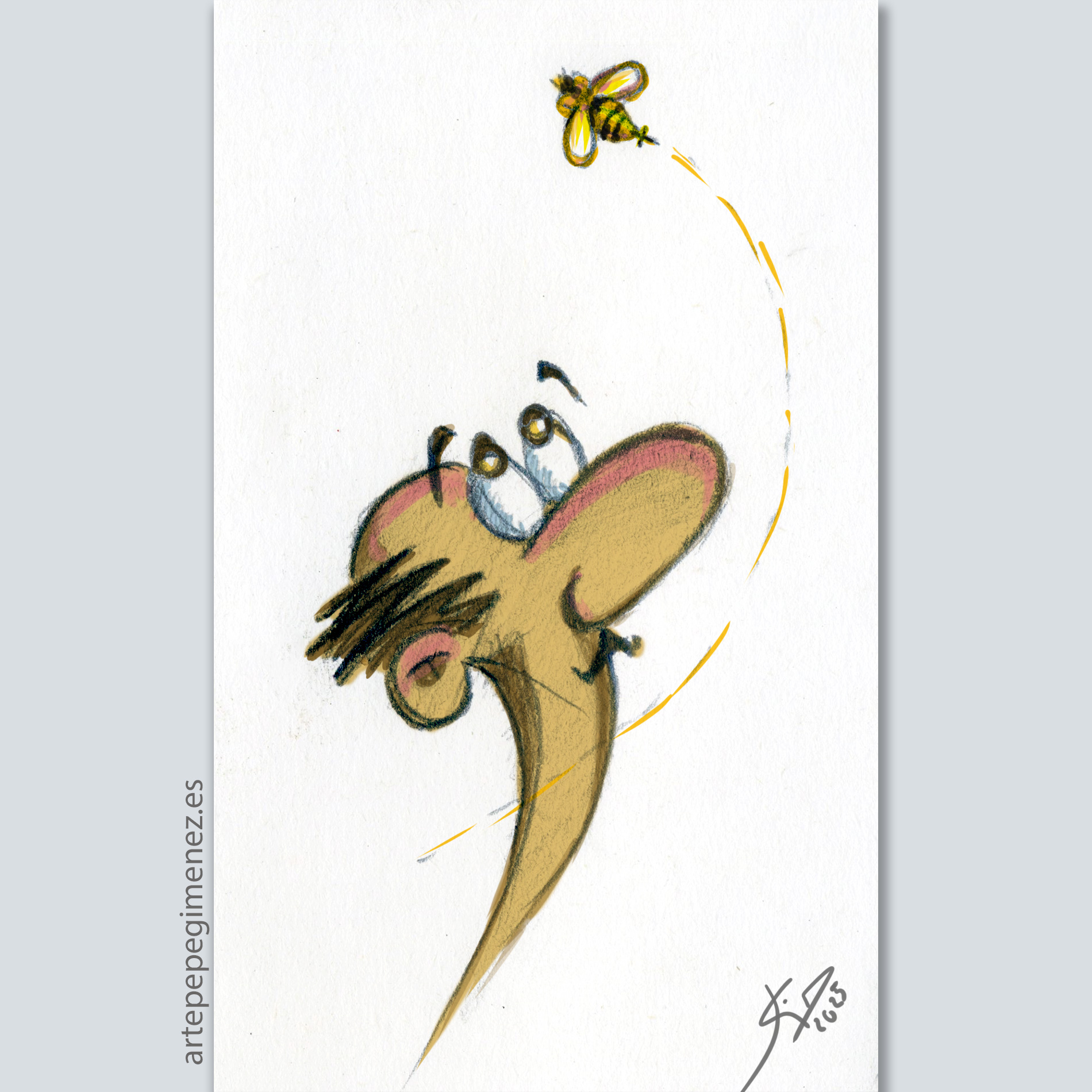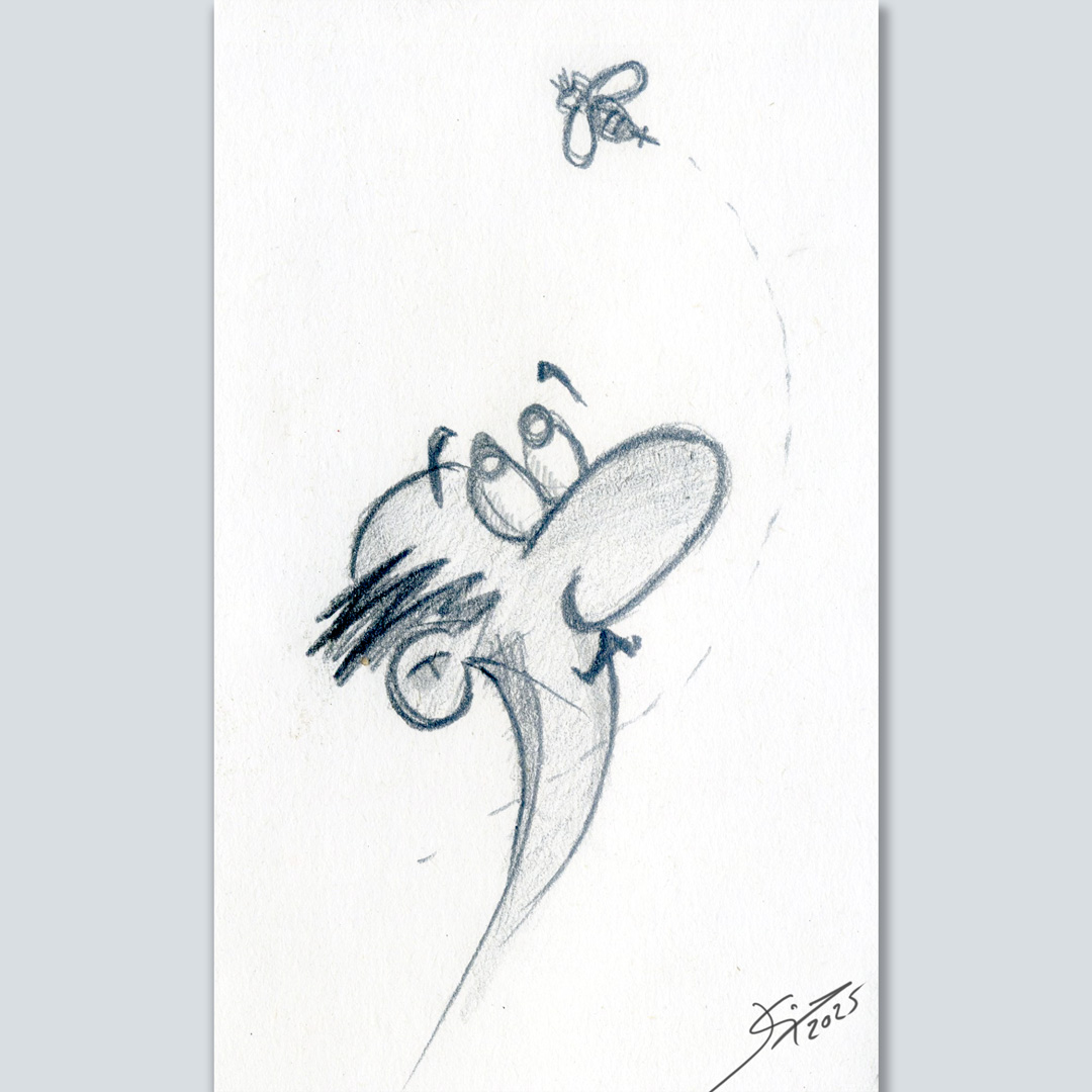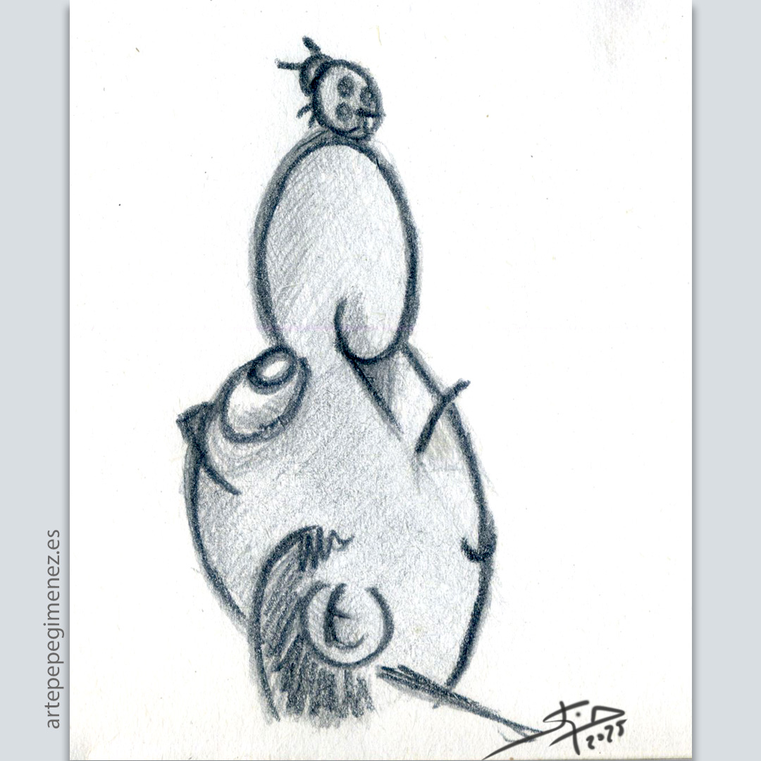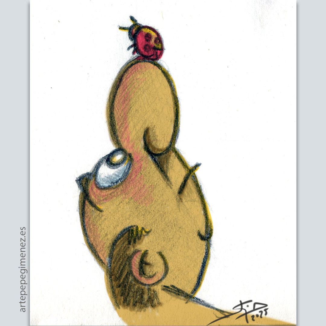 Caricaturas con insecto. Dibujos a grafito y coloreado digital.​ Marzo de 2025