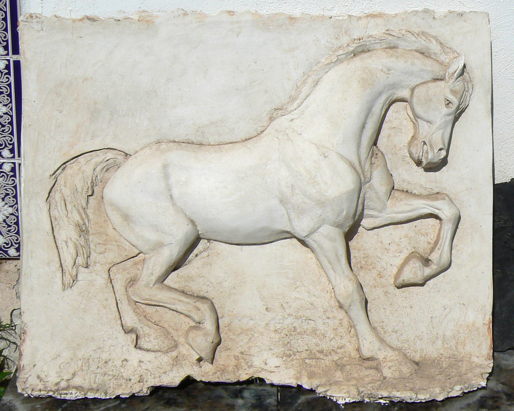 Lobo negro – Relieve de cemento pigmentado. Colocado en la puerta de La Frontera (Abril 2020).