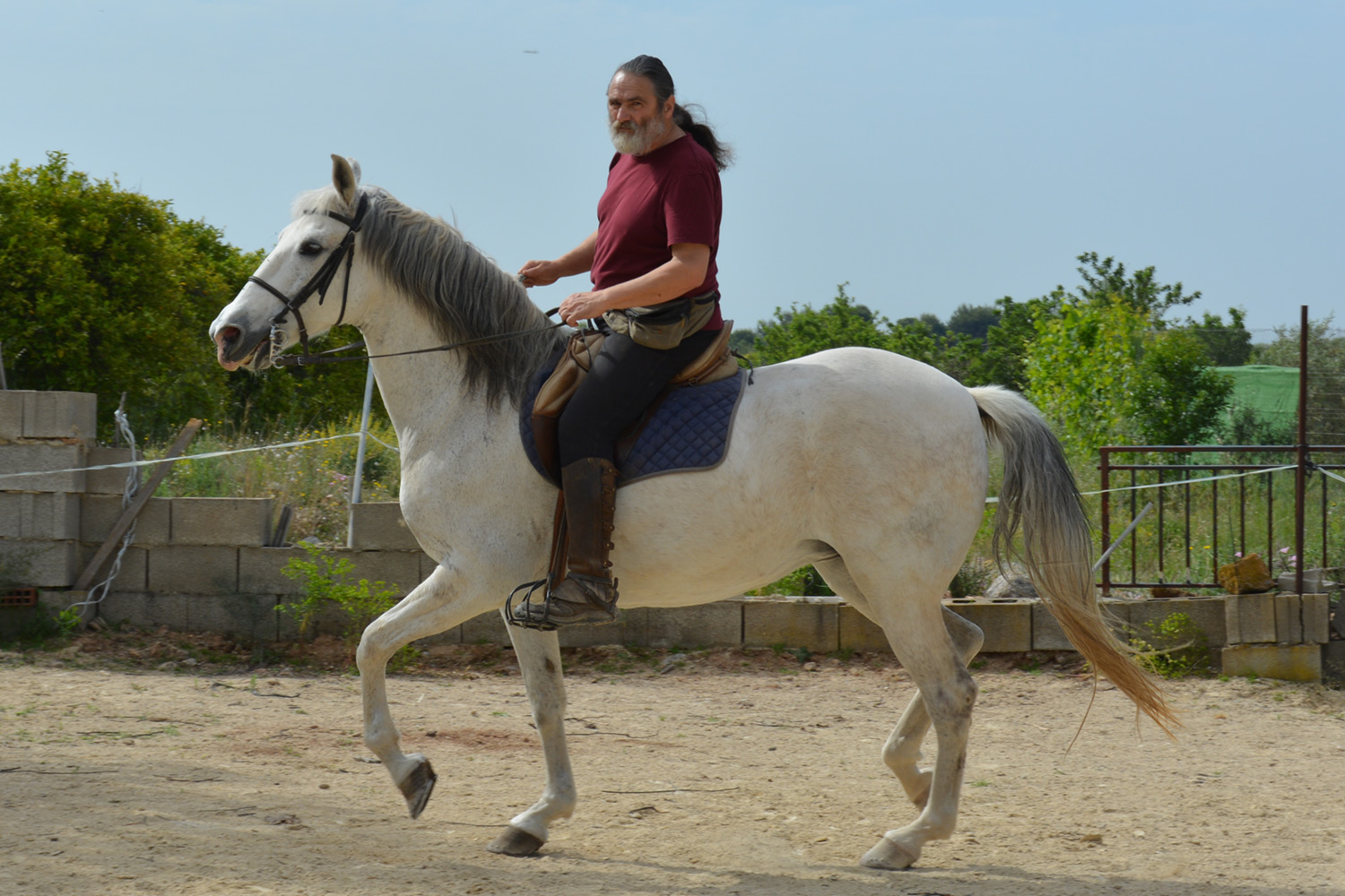 Empecé a montar con cierta asiduidad a partir el año 90, cuando empecé a tener algo de estabilidad económica. En el año 95 tuve mi primer caballo, mi gran caballo Uni (universo). Con él y un par de perros, me fui a vivir al campo en el 2005. Sigo acá en La Frontera (mi casa campera) y ahora mismo tengo dos yeguas.